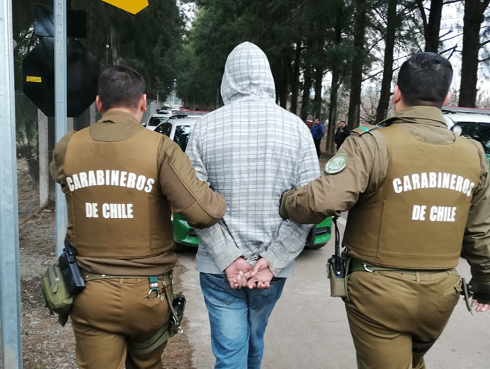 Tras el brutal ataque, el sujeto se dio a la fuga y el mando de carabineros a cargo del Prefecto de Colchagua, coronel Rodrigo Bascuñán dispuso de un amplio operativo que involucró un equipo multidisciplinario compuesto por más de 30 funcionarios que salieron en su búsqueda por diferentes sectores de la comuna, logrando ubicarlo y detenerlo cuando escapaba por la línea férrea a la altura del sector Santa Teresa.