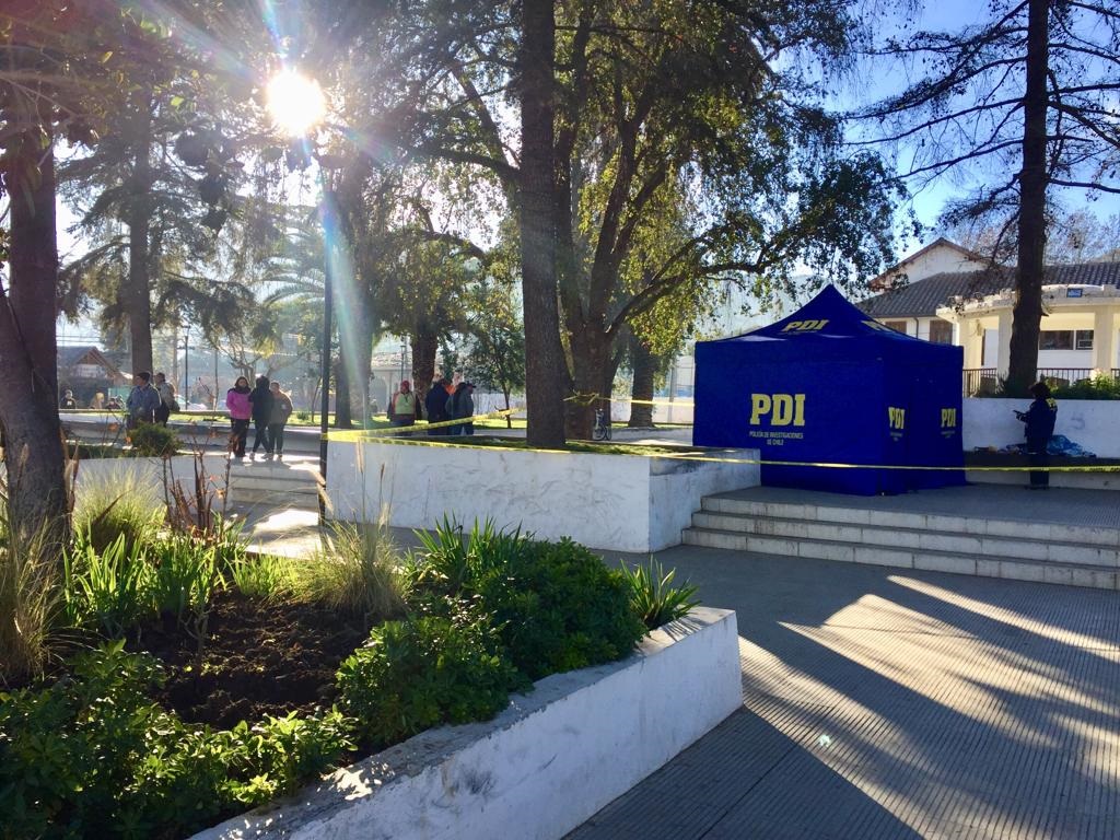 Peritos de la PDI regional investigan la muerte de un hombre de 74 años, cuyo cadáver fue encontrado en horas de la mañana de este viernes a un costado de la plaza de armas de la comuna de Machalí.